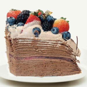 Indulge in the "Chocolate Crepe Strawberry Layers Cake," a chocolate lover's paradise. This decadent treat features 25 layers of chocolate crepes enveloping a rich chocolate mousse. Its crowning jewel is a delicate layer of strawberry jello, adding a sweet surprise. With an intense chocolate flavor, this cake is a must for chocolate enthusiasts.