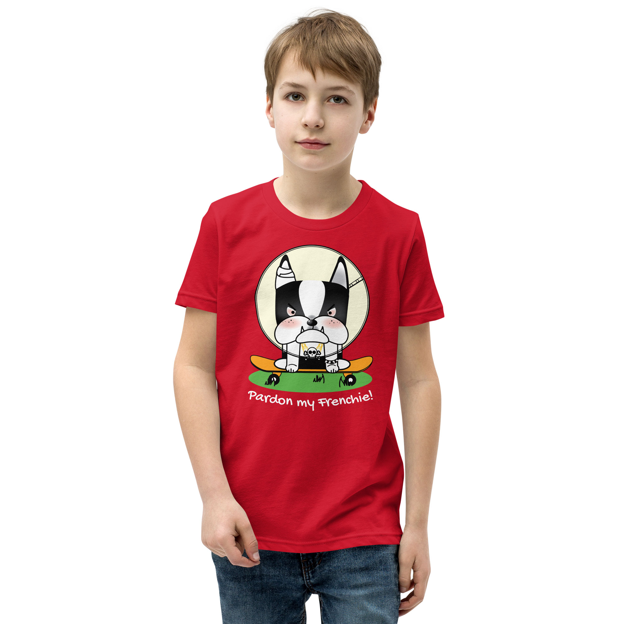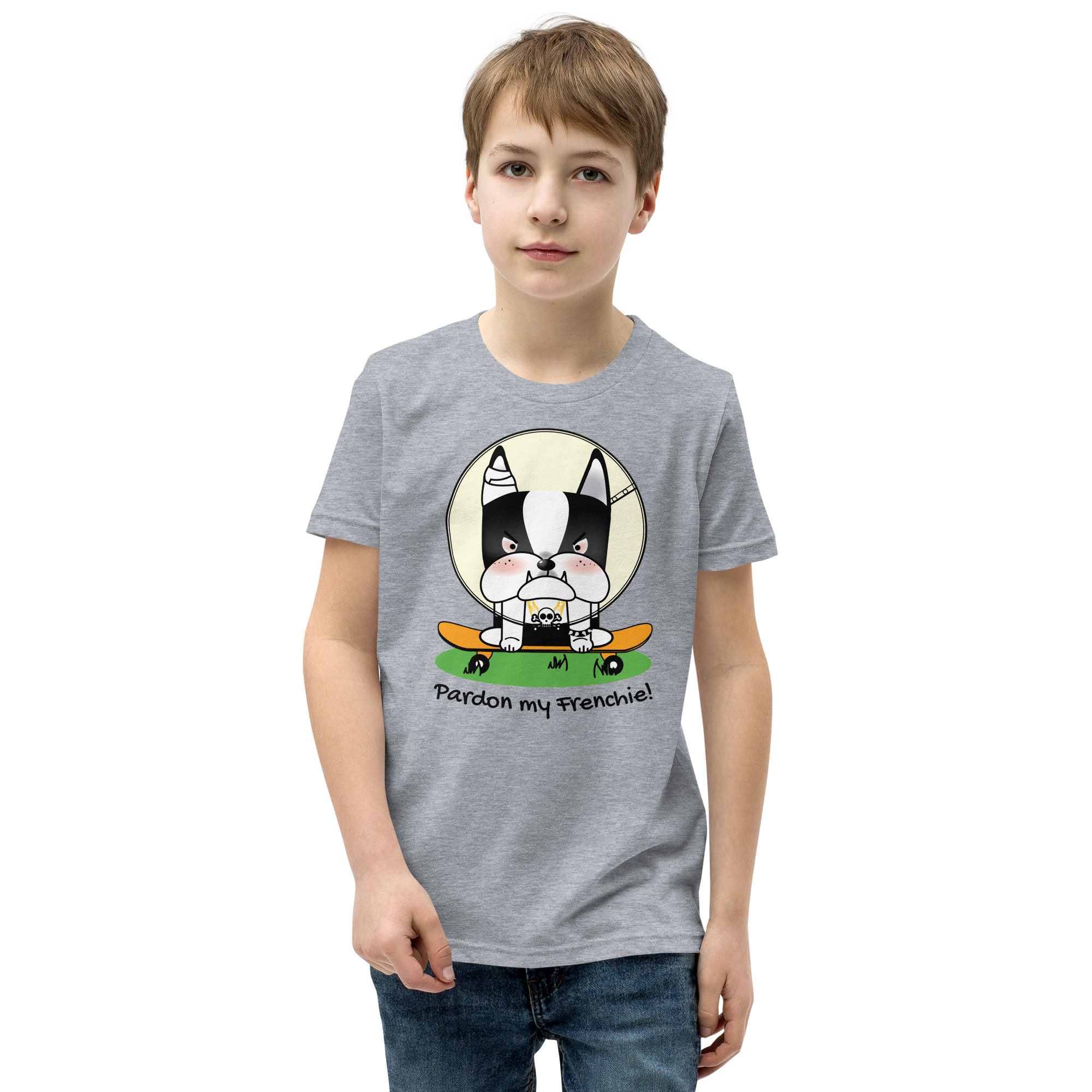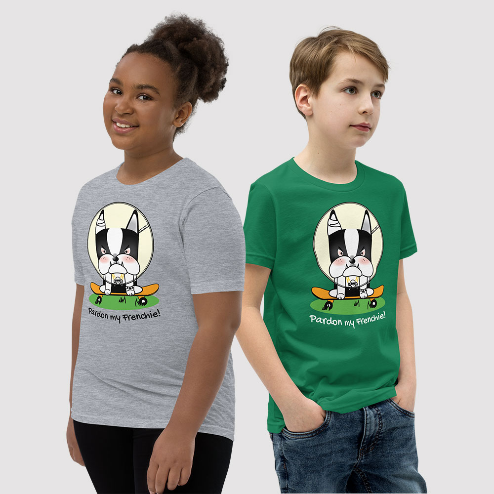 Looking for the perfect tee for your youngster? Look no further than our “Pardon my Frenchie! “Collection – Monster Racer Youth Short Sleeve T-Shirt – Light, Soft, and Unique Frenchie Cartoon Collection. This tee is bound to become a favorite in any youngster’s wardrobe, offering a delightful combination of comfort and style.