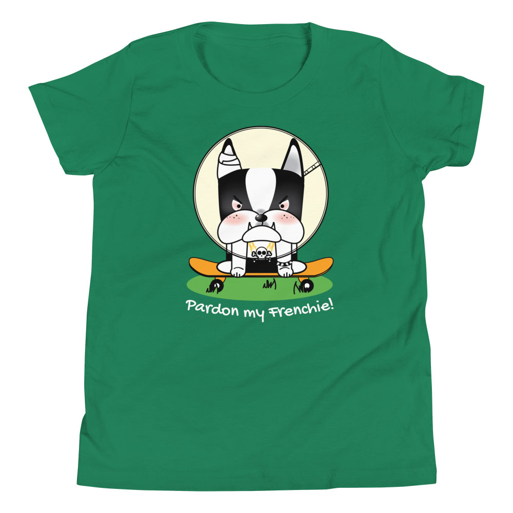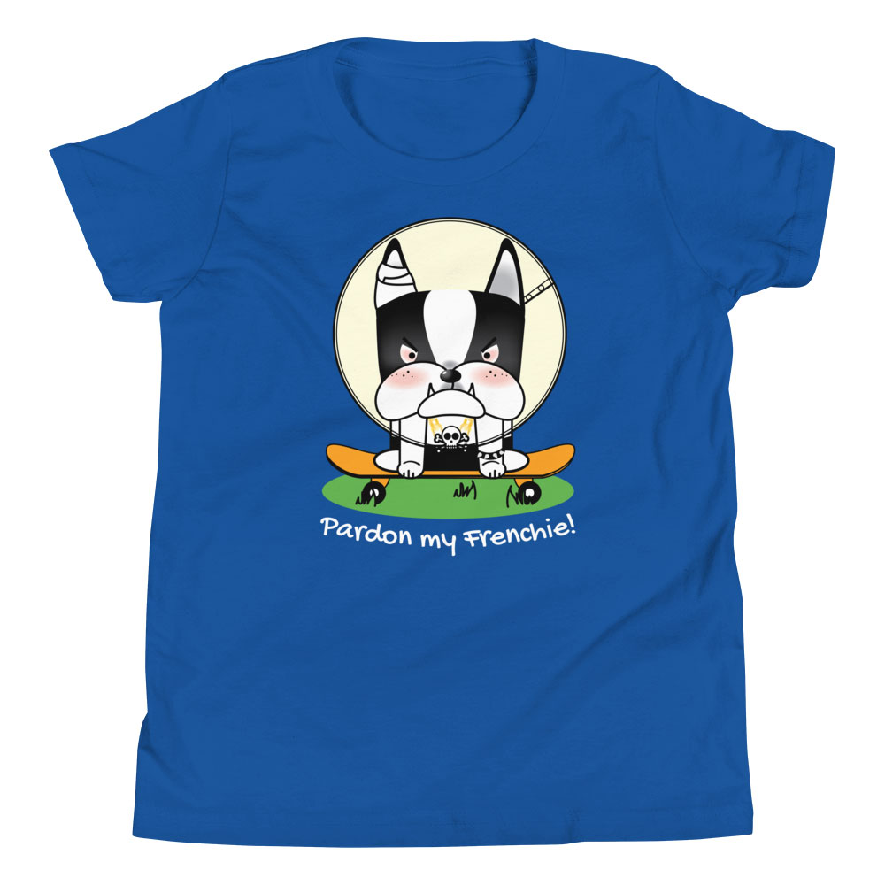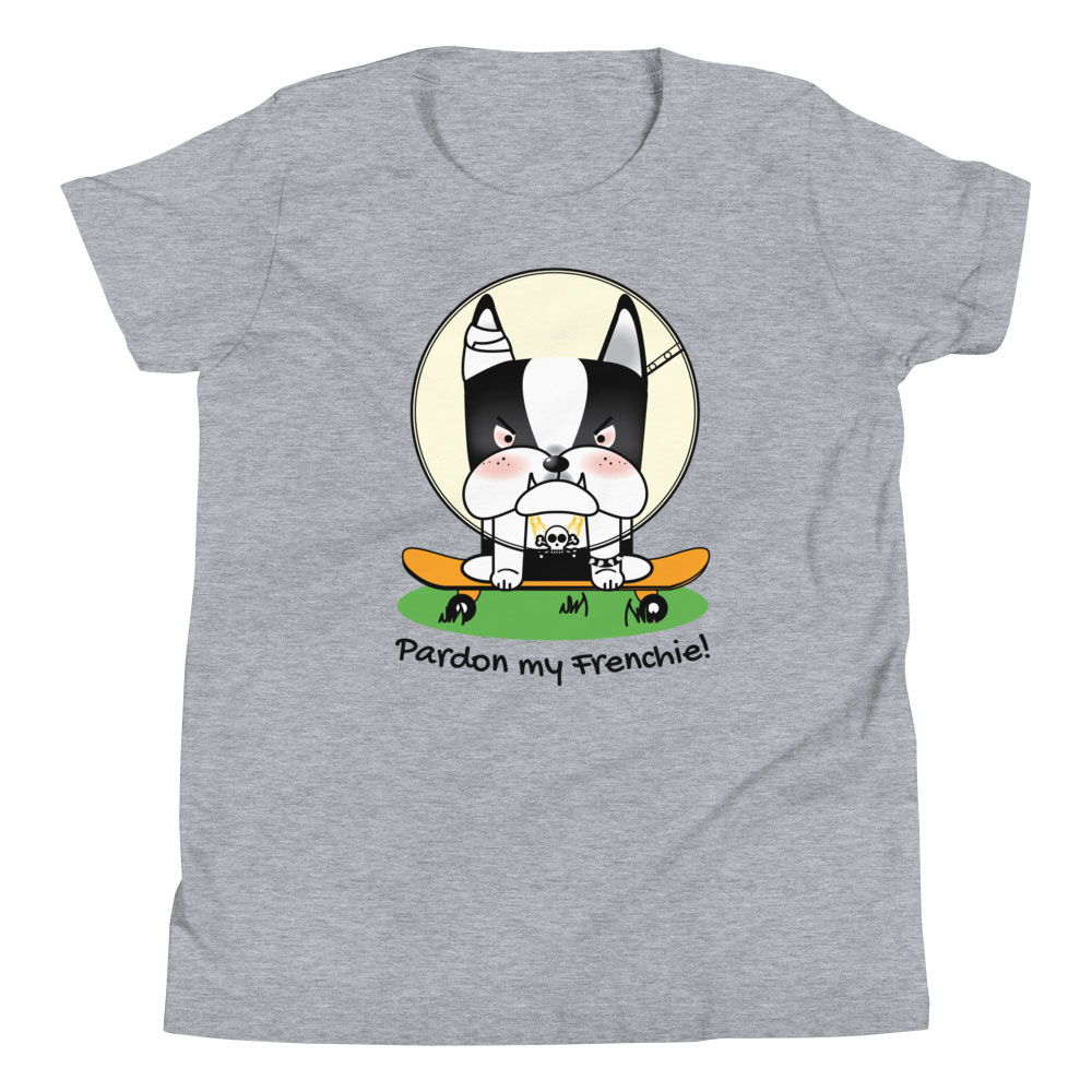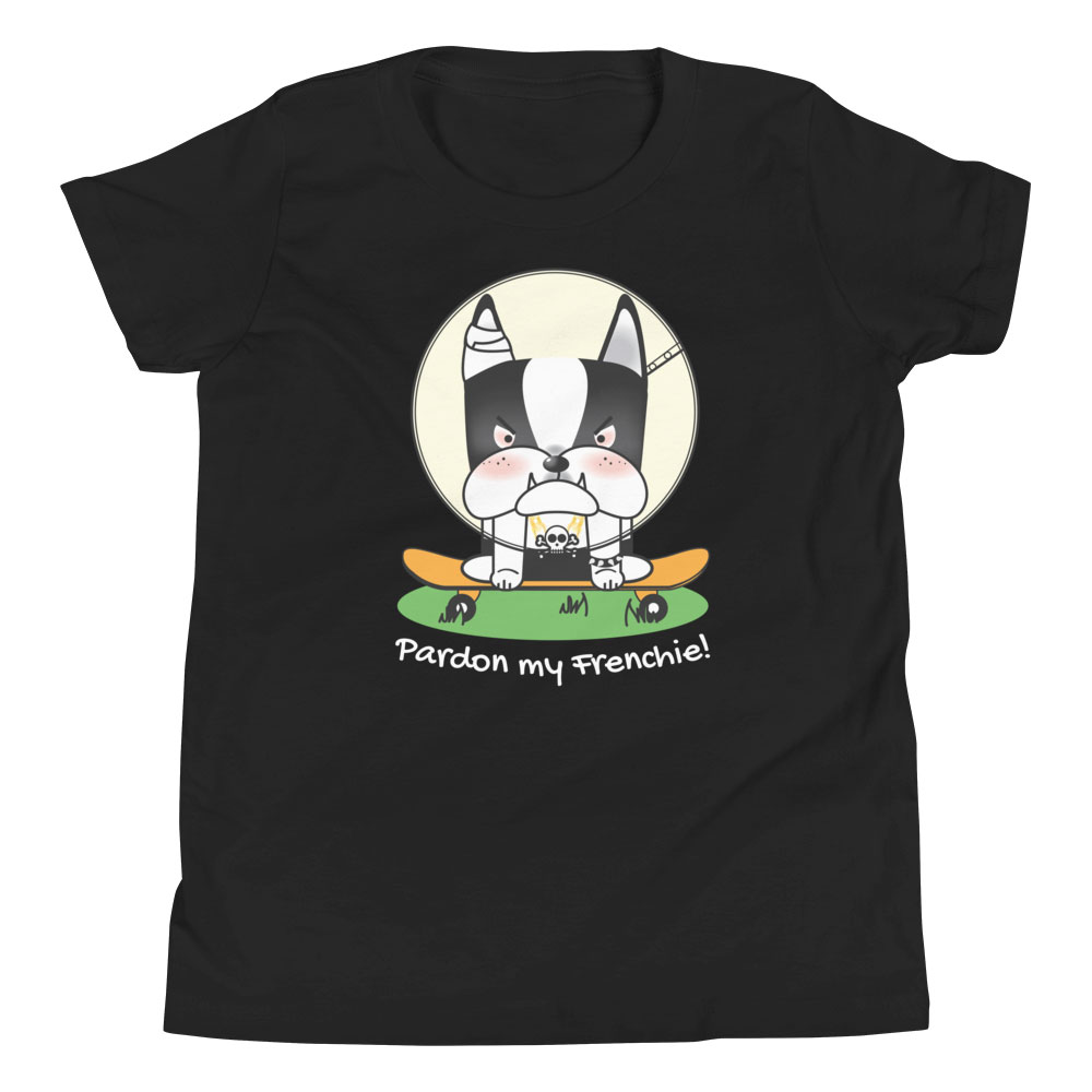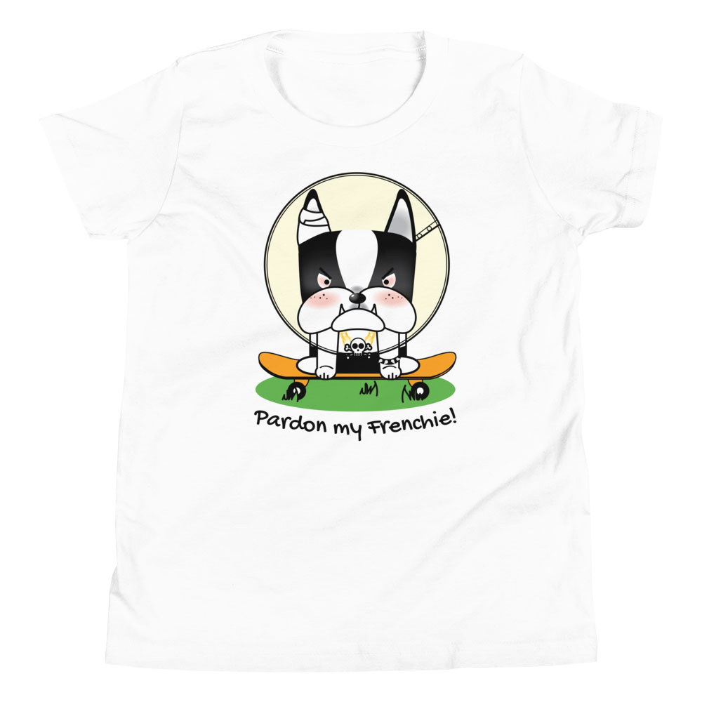 Upgrade your child’s wardrobe with our “Pardon my Frenchie! “Collection – Monster Racer Youth Short Sleeve T-Shirt. Embrace a tee that offers comfort, style, and a unique design, perfect for standing out in any crowd!