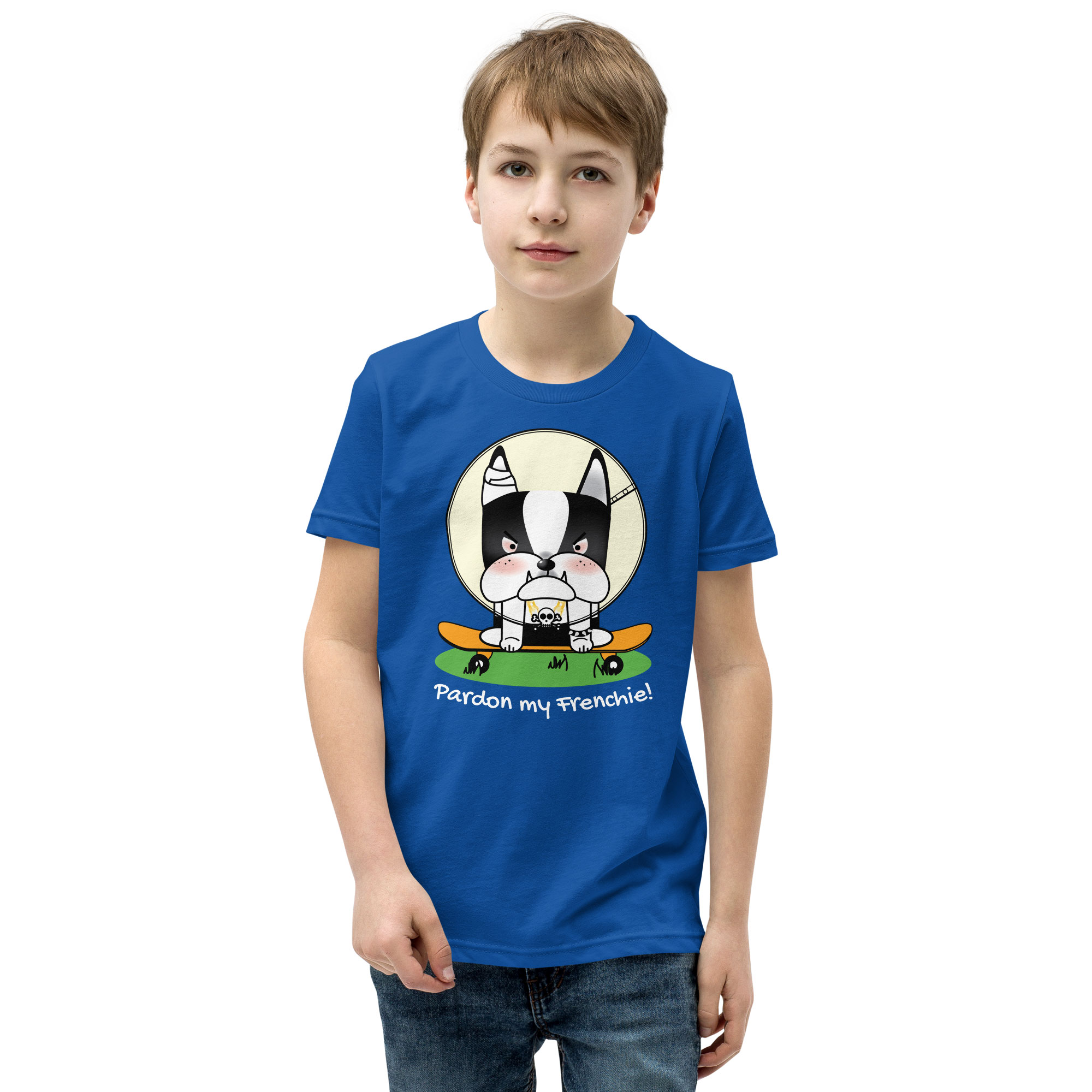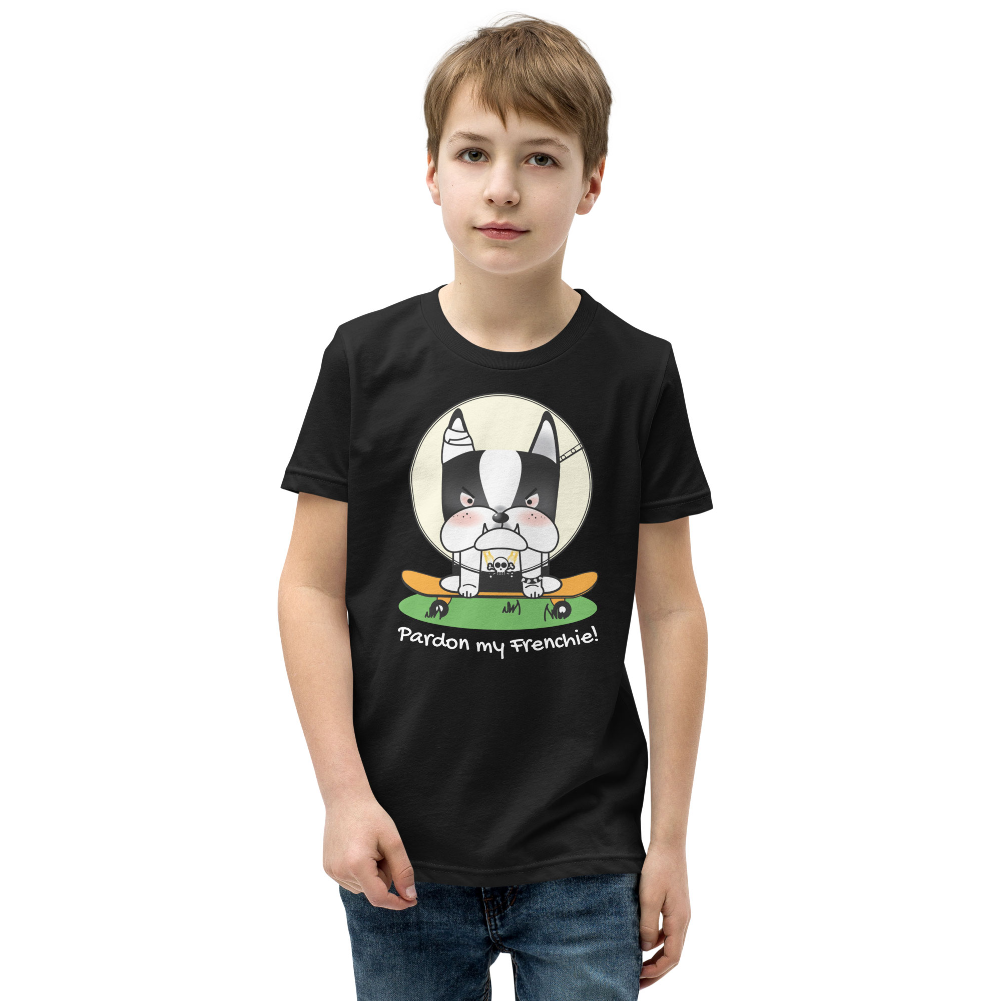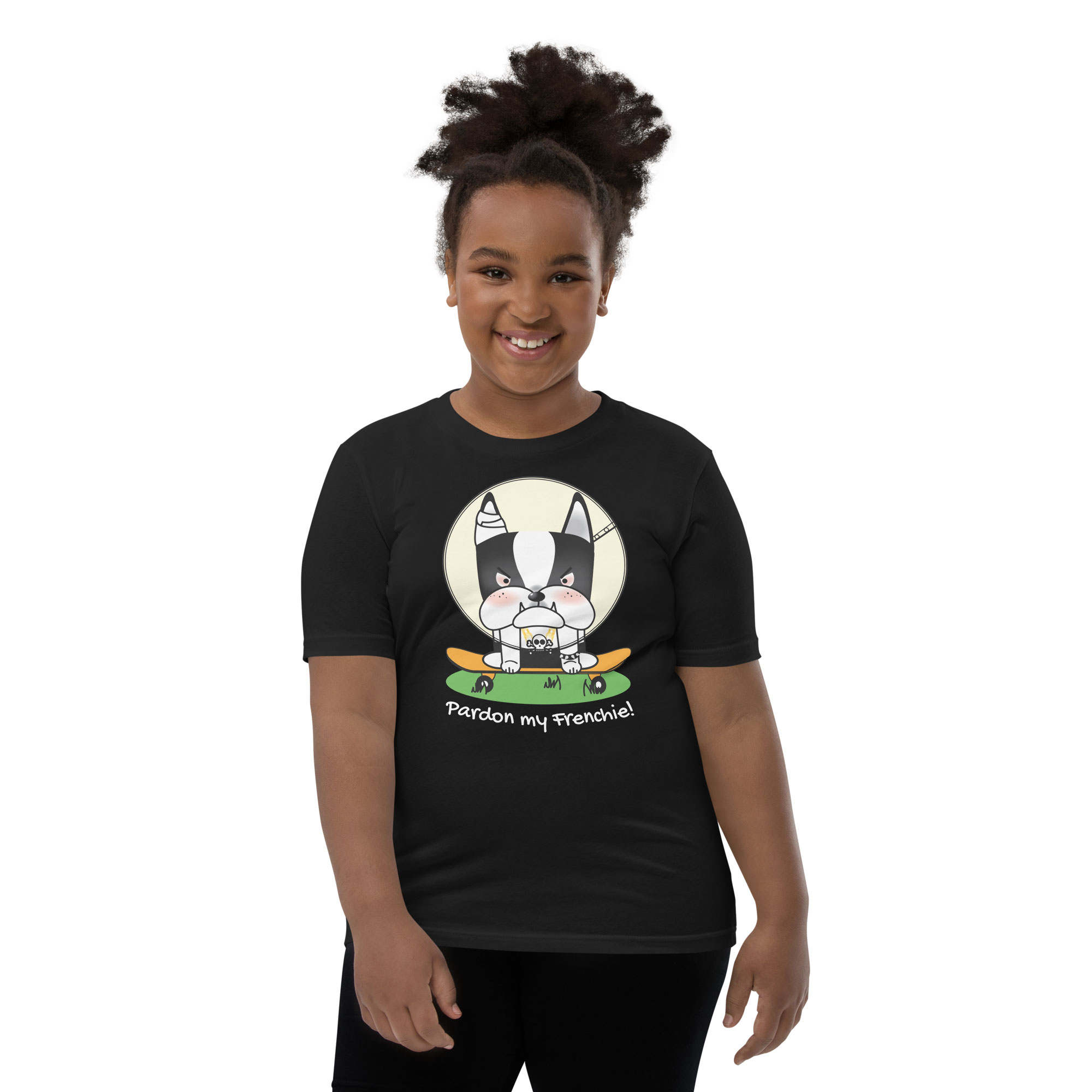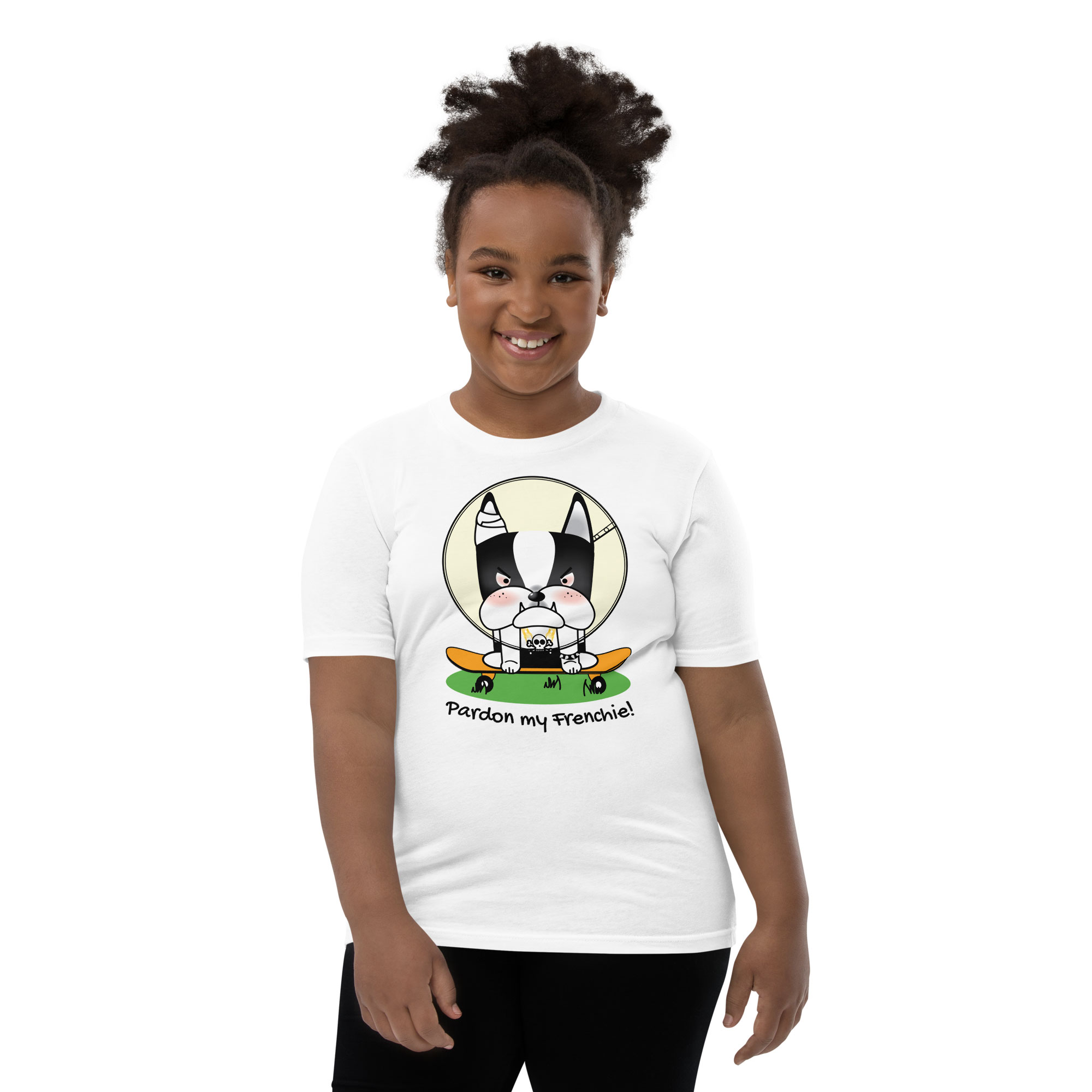 Upgrade your child’s wardrobe with our “Pardon my Frenchie! “Collection – Monster Racer Youth Short Sleeve T-Shirt. Embrace a tee that offers comfort, style, and a unique design, perfect for standing out in any crowd!